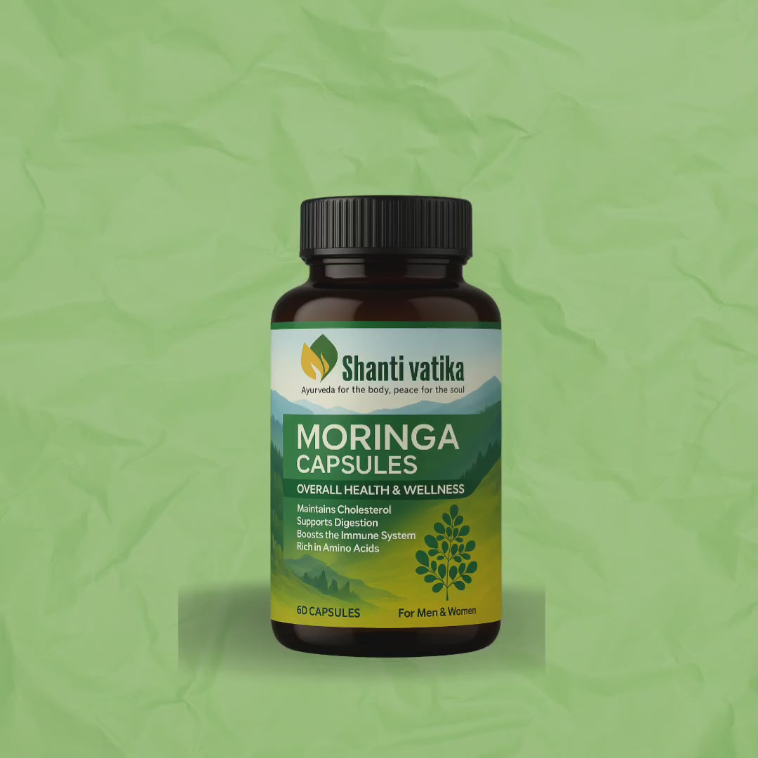 Experience complete wellness with Shanti Vatika Moringa Capsules, made from pure and natural Moringa leaves, also known as the “Miracle Tree.” Rich in essential vitamins, minerals, antioxidants, and amino acids, these capsules provide daily nourishment for overall health and vitality.